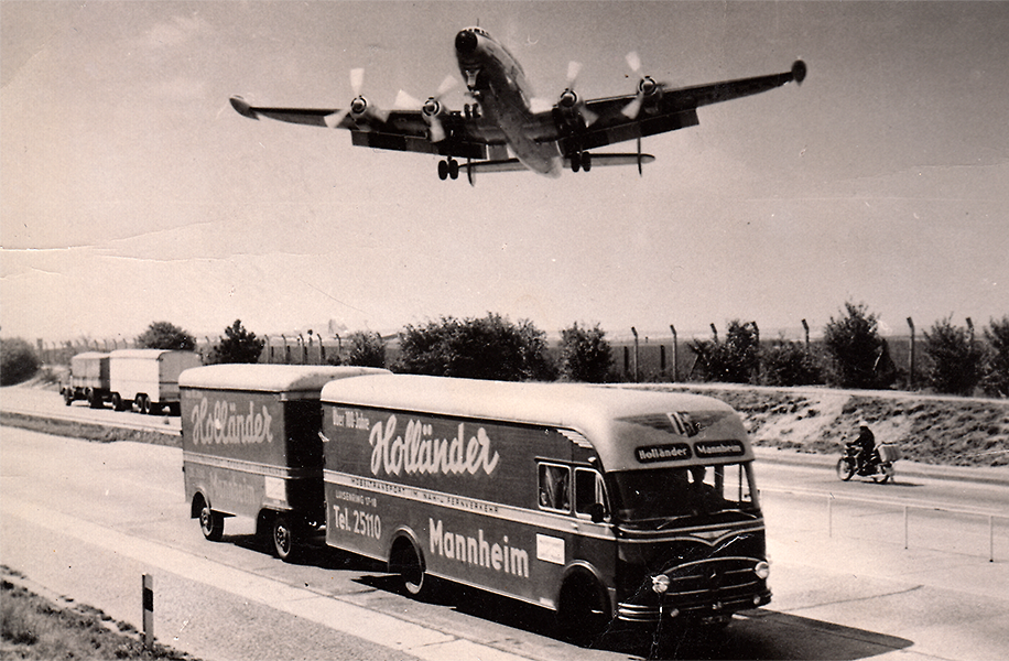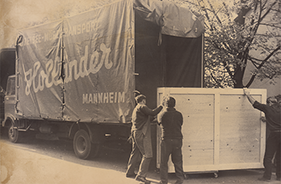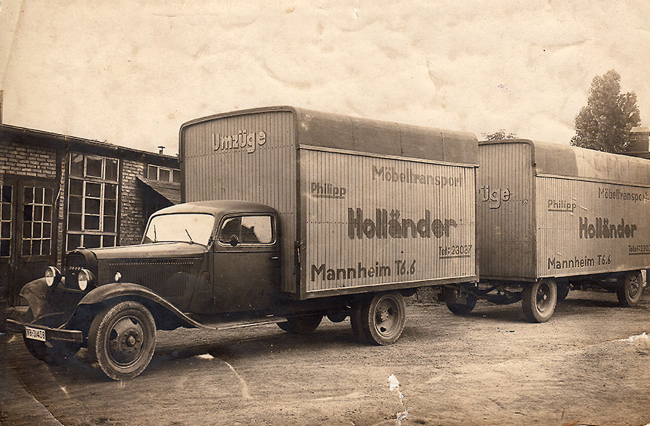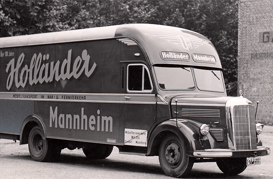 1838 Schreinermeister Daniel Gottlieb Holländer beginnt mit dem Verpacken und Transport von Hausrat innerhalb von Mannheim und anderen Plätzen.